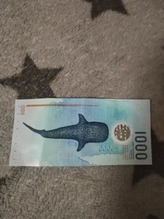Billete de 1000 Rufiyaa de Maldivas con diseño de tortuga marina. - Denominación: 1000 Rufiyaa. - Motivo principal: Tortuga marina y coral. - Serie: A731103.