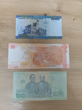 Lote 3 billetes: Tanzania, Filipinas, Tailandia