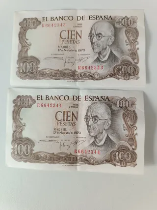 Billetes España 100 Pesetas 1970 (2 unidades)