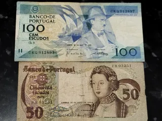 Lote 2 Billetes Portugal 100 y 50 Escudos