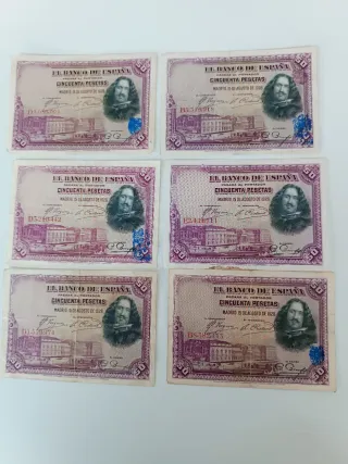 Billetes 50 Pesetas España 1928 (6 unidades)