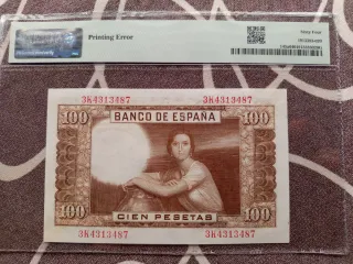 Billete 100 pesetas pmg 66epq sin serie y numeración baja