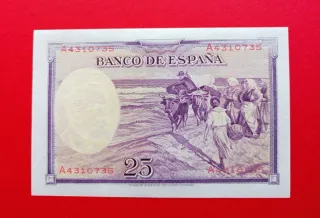 Billete de 25 pesetas del Banco de España, emitido en 1931. Vicente López. Buscado y raro. Excelente estado - Serie: 6.906.698 - Fecha: 25 de abril de 1931 - Lugar de emisión: Madrid - Firma del Gobernador y del Interventor. Envío ordinario 1,50€ Envío certificado 5.50€ También envía por wallapop