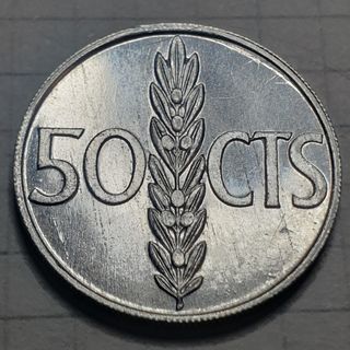 Moneda de 50 céntimos de peseta española con diseño del año 1966, estrella 71. - Anverso: Efigie de Francisco Franco. - Reverso: 50 CTS. con espiga central. - Material: Aluminio - Más monedas en mi perfil, posibilidad de descuento si se hacen lotes. - El envío corre a cargo del comprador. - No envío fotos por WhatsApp.