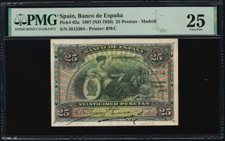 25 Pesetas España 1907 - Billetes antiguos PMG25