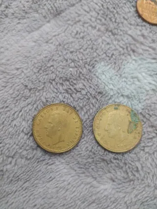 Se venden siete monedas antiguas españolas de pesetas. Son monedas de 25 y 50 pesetas, algunas con señales de uso. - Incluyen monedas de 25 y 50 ptas. - Algunas muestran desgaste por el paso del tiempo. - Ideales para coleccionistas.