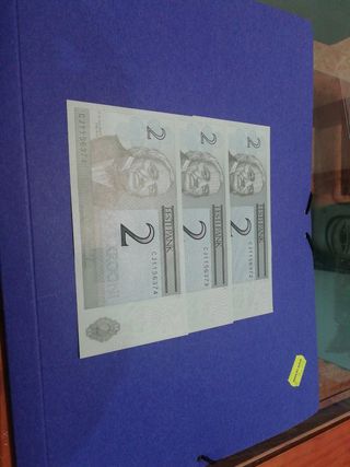 Estonia 2007, 2 kaks kroni, número de serie correlativo, sin circular, 1 billete 2 euros, los 3 billetes 5 euros. Más en mi perfil