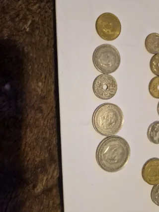 Conjunto de 70 monedas antiguas de diversas procedencias. colección de 72 monedas antiguas, que incluye pesetas de la época de Franco, monedas francesas, danesas y de otras regiones. La colección también cuenta con monedas de 5 pesetas de distintas comunidades autónomas y cuatro monedas especiales del Mundial de 1982. Ideal para coleccionistas o amantes de la numismática.