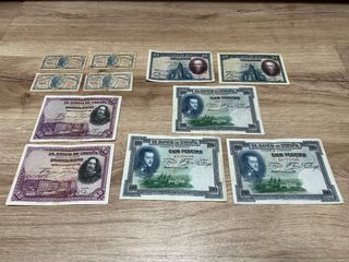 ***OFERTON*** Conjunto de billetes españoles antiguos de coleccionistas. - Incluye billetes de 100 pesetas. - Incluye billetes de 50 pesetas. - Incluye billetes de 25 pesetas. - Fechas visibles: 15 de Agosto de 1928. Solo 20€ todos!!!