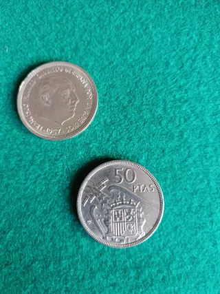 Monedas 1 Peseta 1957 y 5 Pesetas 1966