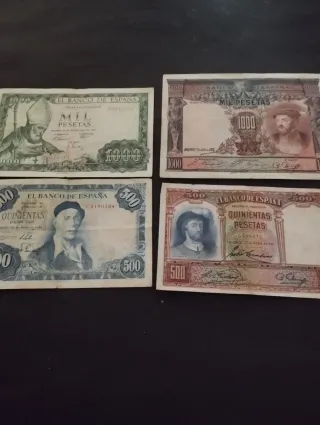 Conjunto de billetes antiguos del Banco de España. - Billetes de 500 pesetas. - Billetes de 1000 pesetas. - Billetes de 1 peseta. - Billetes de 25 pesetas. Escucho ofertas