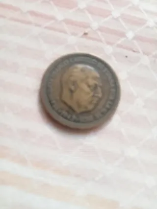 Moneda de peseta española de 1966 con la imagen del Caudillo Franco. La moneda presenta un buen estado de conservación, aunque muestra señales normales de uso. - Moneda de 1966 - Imagen de Francisco Franco - Peseta Española