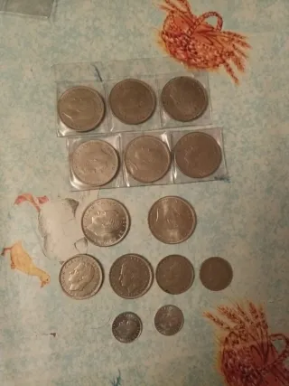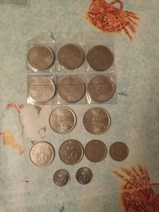 Conjunto de monedas de pesetas españolas. - Moneda de 500 pesetas. - 10 Monedas de 100 pesetas. - 7 Monedas de 50 pesetas. - 10 Monedas de 25 pesetas. - 3 Monedas de 10 pesetas. - 5 Monedas de 5 pesetas. Precio negociable. Puedes combinar las monedas con otras de mi perfil. Contacta por el chat.
