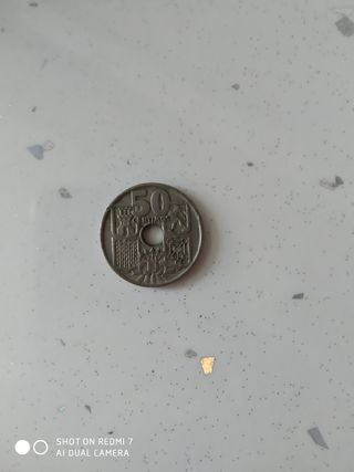 antigua moneda de 50 pesetas de 1957 época de franco , medalla insignia pin condecoración división azul militar españa franco falange guerra civil franquista franquismo distintivo egaña peseta numismática militaria militaría retro vintage viejo antiguo colección coleccionismo
