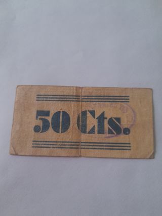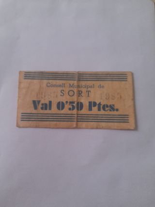 Billete Guerra Civil Sort (Lérida) 0,50 pesetas 39x78 mmtos En buen estado