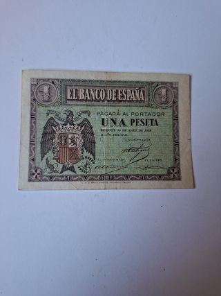 Billete emitido por el Bando Nacional durante la Guerra Civil en Abril de 1938. Impresa en la Italia de Mussolini para Franco. Gran Águila de San Juan. Esta en una extraordinaria conservación.