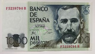 Billete de 500 pesetas del Banco de España, emitido en 1979. Un billete conmemorativo de la historia económica de España. - Denominación: 500 pesetas - Año de emisión: 1979 - Banco emisor: Banco de España - Serie: 1M8717018