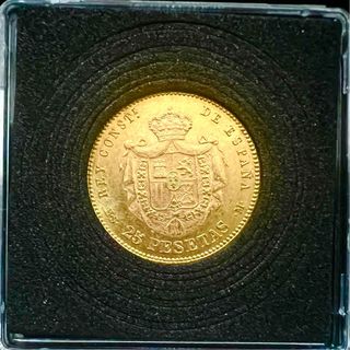25 pesetas de Oro (8,08 gramos ley 0’900) 1881 [18-81] Alfonso XII (1874-1885). Madrid. MSM. Brillo original. Estado de conservación EBC+. Mas bonito en mano que en las fotos. Una moneda histórica que se revaloriza constantemente, como lo hace el oro.