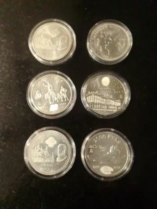 Se venden 6 monedas de plata año 1995 / 96/ 97 / y 98 - Monedas de colección. - Valor nominal de 2000 pesetas cada una. Sin circular