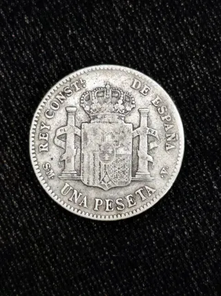 Conjunto de dos monedas antiguas de una peseta española. Cada moneda presenta un diseño distintivo. - Una moneda muestra un retrato. - La otra moneda tiene un diseño arquitectónico.