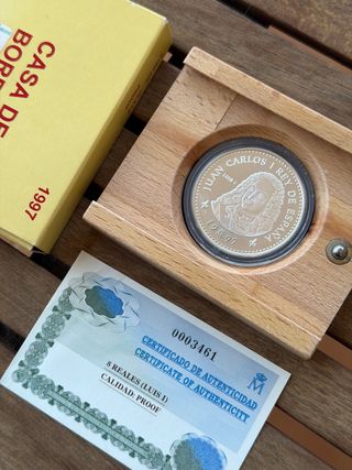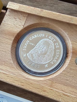 moneda plata 2000 pesetas - 8 reales Casa de Borbón 1997 Con estuche de madera y certificado