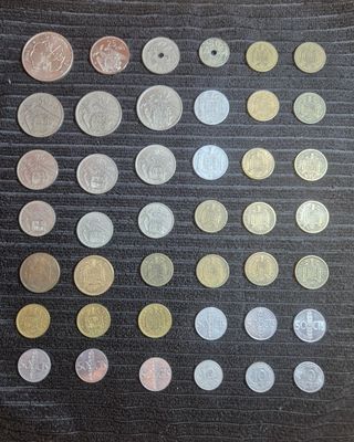 ENVIO GRATIS CERTIFICADO NACIONAL Lote numismático compuesto por más de 40 monedas originales del periodo de Francisco Franco, acuñadas entre 1937 y 1975. PIEZAS DESTACADAS 100 pesetas de 1966 (estrella 68) – Plata (.800) 25 pesetas de 1957 (estrella 75) en acabado proof / flor de cuño El lote está compuesto por las monedas de las fotos