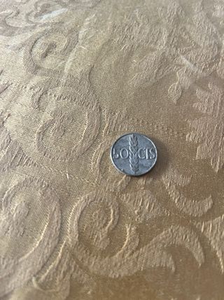 Moneda de 50 pesetas de la época de Franco, acuñada en el año 1961. - Diseño con espiga de trigo en el centro. - Inscripción 50 PESETAS alrededor.