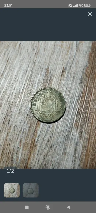 Moneda de 2'5 pesetas del año 1953, con la efigie de Franco. - Canto con inscripción. - Diseño con escudo de España. La cara de franco está perfecta y tiene como un abollon y la otra cara, una estrella no está grabada. La cara de franco no tiene desgaste