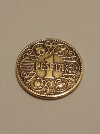 Moneda de una peseta,del año 1947, con estrellas 19 y 52 Moneda usada . numismática