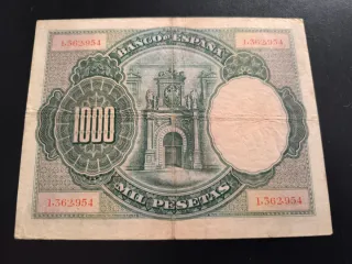 Billete de 1000 pesetas del Banco de España, emitido en Madrid el 1 de julio de 1935. - Número de serie: 0022978 - Diseño con figuras alegóricas y retrato. - Texto: Págara al portador mil pesetas. -visto en ebay en peores condiciones a 750e , escucho ofertas