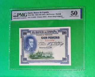 Billete de 100 pesetas 1925 España. PMG 50 (About Uncirculated).195€. - ATT WASP - SOLO EN MANO O PAYPAL - ENVIO CARTA CERTIFICADA O PREMIUM - CUALQUIER DUDA CONTACTAR