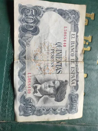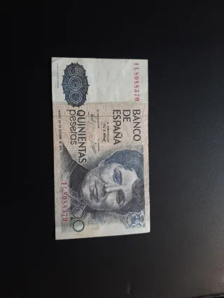 Billete de España circulado de 500 pesetas de 1979 con serie 1L. Posibilidad de envío ordinario bajo responsabilidad del comprador. Crea tu lote o anuncio con los billetes que quieras.