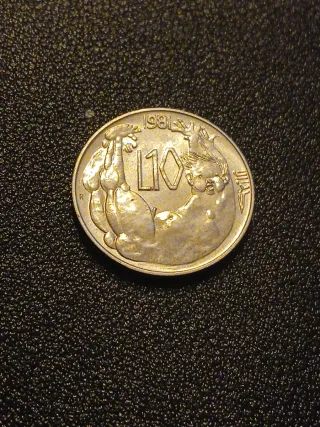 Conjunto de monedas españolas de 1982, sin circular. - Incluye monedas de 100, 50, 25, 5, 1 ptas. y 50 cts. - Fabricadas en diferentes aleaciones como Cu 75% Ni 25% y Al 96,5% Mg 3,5%. - Diámetros que varían entre 20 mm y 34 mm.