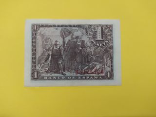 Billete de 1 peseta del Banco de España, emitido en Madrid el 22 de julio de 1953. Presenta un retrato de un personaje histórico. - Denominación: Una Peseta. - Fecha de emisión: 22 de Julio de 1953. - Banco emisor: Banco de España. - Diseño: Retrato de personaje histórico y motivos ornamentales. SE LEEN OFERTAS