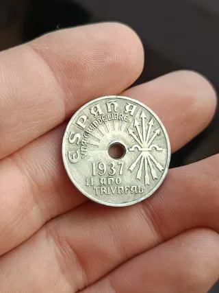 Moneda de 25 céntimos de España del año 1937 entrego en mano por Madrid centro envío ordinario 1€ envío certificado 6,00€ acepto transferencia bancaria, ingreso en cuenta ( banco ING) o bizum también puedo enviar por Wallapop