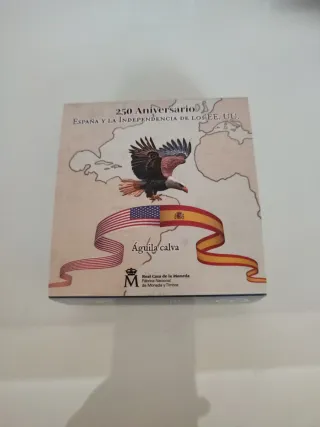 Moneda conmemorativa de 10 euros. - Conmemora el 250 Aniversario de la Independencia de España y los EE. UU. - Diseño de Águila calva. - Emitida por la Fábrica Nacional de Moneda y Timbre de España.