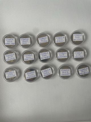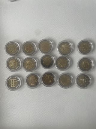 Monedas 2 Euros España, se venden monedas sueltas tambien. España 2023 UE 3,5€ España 2023 Caceres 3,5€ España 2021 Toledo 3,5€ España 2020 Mudejar 3,5€ España 2016 Segovia 4,5€ España 2015 Bandera 3,5€ España 2015 Altamira 3,7€ España 2014 Guell 5,5€ España 2014 Coronacion 4,5€ España 2013 Escorial 4,5€ España 2012 Aniversario 4,5€ España 2012 Burgos 4,1€ España 2010 Cordoba 4,1€ España 2009 EMU 6,5€ España 2007 Tratado 7€