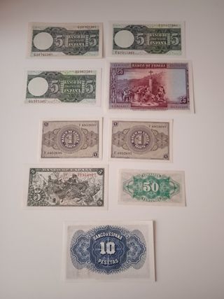 - Emisión: Banco de España - Valor: 5000 Pesetas - Fecha: 23 de octubre de 1979 - Numeración colectiva: 6Q7079852, 6Q7079853, 6Q7079854 - Estado de conservación: EBC/SC (prácticamente sin circular, en muy buen estado) 🔷️Se trata de un trío correlativo, muy difícil de encontrar, especialmente en este grado de conservación 🔷️Ideal para coleccionistas exigentes de billetes españoles de Juan Carlos I 🔷️Billetes originales, auténticos y en perfecto estado Se vende como lote pero se puede negociar precio separado por cada billete‼️