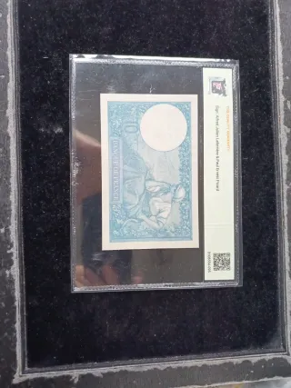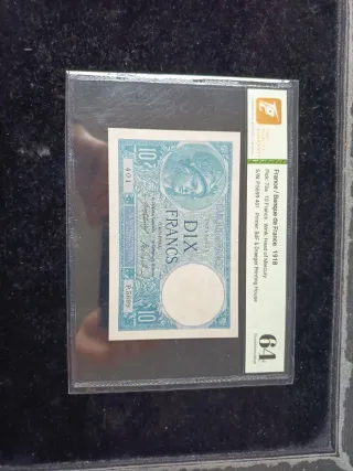 Billete de 10 Francos de Francia, emitido por el Banco de Francia en 1918. Presenta el diseño de la Cabeza de Mercurio. - Catalogado como Pick: 73a. - Serie: P.5699 401. - Impreso por BdF & Draeger Printing House. - Grado: 64 Choice Uncirculated.