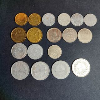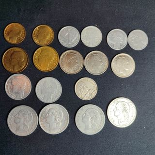 Se lote de 19 monedas de Francia. Tercera republica Francia de Vichy Cuarta republica 50 céntimos 1931 1 francos 1938(2),42,48,57,59 2 francos 1938,47(2) 5 francos 1945,47,49(2) 10 francos 1948(2),49 50 francos 1952 100 francos 1954