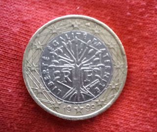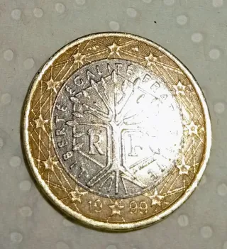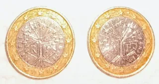 Se venden dos monedas de 1 euro de Francia, acuñadas en el año 1999. Su valor radica en el año de acuñación, en el cual salieron por primera vez, circulando al mismo tiempo con el Franco. Esta primera producción tiene errores que las hacen muy apetecidas.