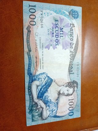 Billete de 1000 escudos de Portugal, emitido en Lisboa el 19 de mayo de 1967. Presenta un retrato de la Reina María II. - Banco de Portugal - Serie FB 02646 - Valor: 1000 Escudos - Fecha: 19 de mayo de 1967 Más billete y monedas en mi perfil No hago envíos Zona Carabanchel Alto