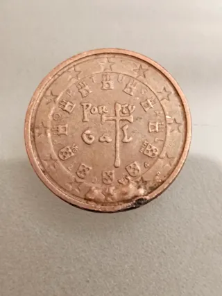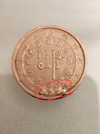 Moneda de 2€ portuguesa del año 2002 con error de acuñación,famosa entre los coleccionistas de la numismática por ser de una tirada errónea de ese mismo año y muy cotizada por los amantes de esta afición.