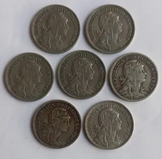 Moneda de 50 centavos de 1977, 2 monedas de 25 escudos de 1980, moneda de 5 escudos de 1984 y monedas de 10 escudos de 1991 y 1992, una moneda de 100 escudos 1991 . Se pueden vender por separado.