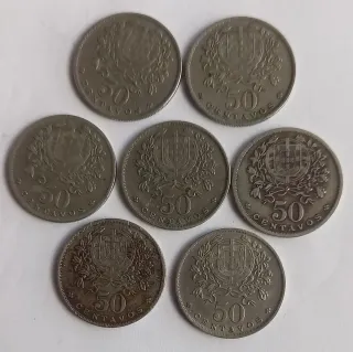 Conjunto de 7 monedas de 50 centavos de Portugal. Cada moneda presenta el diseño de la República Portuguesa. - Monedas de 50 centavos. - República Portuguesa. - Años variados: 1957, 1962, 1963, 1964, 1966, 1967, 1968.