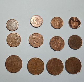48 monedas de 12 países. sin usar. son las monedas de Alemania, Austria, Finlandia, Francia, Grecia, Holanda, Irlanda, Italia, Luxemburgo, Portugal y España. son las monedas que se retiraron con la entrada del Euro. Precio negociables