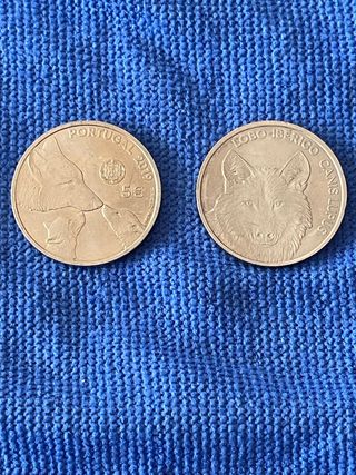 Se venden la moneda de Portugal del lobo de 5€ del año 2019.sin circular,sacada de su rollo correspondiente. Tal y como se ve en las imágenes. Se pueden hacer lotes con las monedas de mi perfil para ahorrar en gastos de envío.