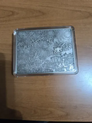 Onza de plata con diseño de La Noche Estrellada de Van Gogh. - Acabado brillante. - Diseño detallado de la obra. - Ideal para coleccionistas. La moneda es de forma cuadrada y tiene una onza de plata pura y 14 onzas de cobre. Es una pieza exclusiva y muy difícil de conseguir ahora mismo.