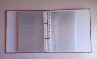 Pack de 27 fundas de plástico transparente para archivador con 3 DEPARTAMENTOS por hoja + REGALO de ARCHIVADOR de su mismo tamaño. Ideales para organizar sellos, billetes, documentos, fotos o tarjetas de Mundicromo, Adrenalyn XL o Megacracks. Su tamaño es el siguiente: Altura 21cm X Ancho 15cm Departamento Grande 10,5cm Departamento Pequeño 2,5cm - Material plástico resistente. - Perforadas para carpetas de anillas.