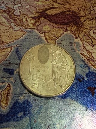 Moneda conmemorativa de 2000 pesetas del año 1999. - Diseño de Santiago el Mayor. - Grabado Xacobeo 1999. - Canto con inscripción. Moneda de 5 euros de Austria. Presenta un diseño circular con el número 5 en el centro. - Grabado REPUBLIK ÖSTERREICH. - Diseño con escudos y motivos decorativos. Tags: · regalos · oferta · iphone · ipad · samsung · xiaomi · playstation · ps5 · nintendo switch · xbox · vídeo